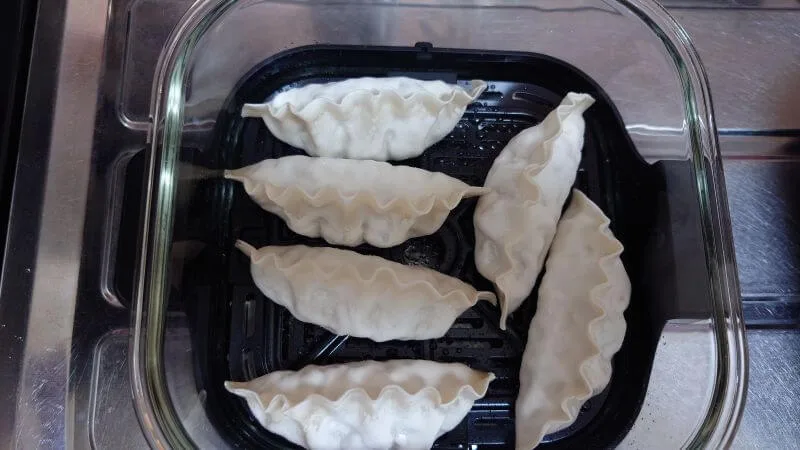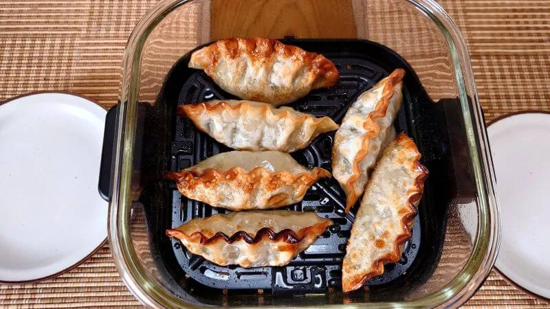 冷凍餃子の「王マンドゥ 肉&野菜」をサラダオイルをスプレーした調理プレートに並べて「ベイクモード」で調理しました。