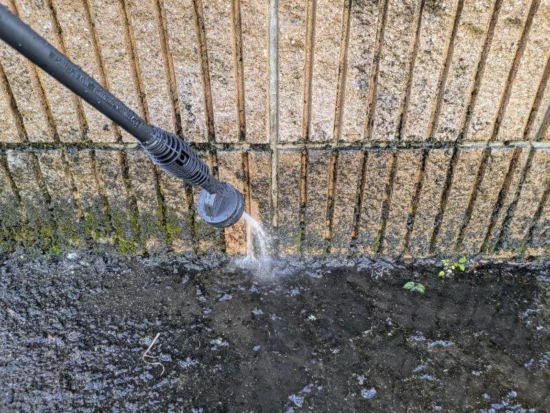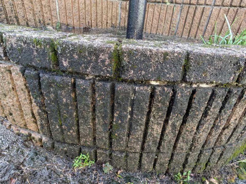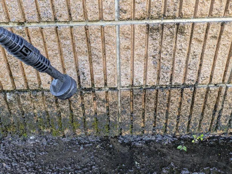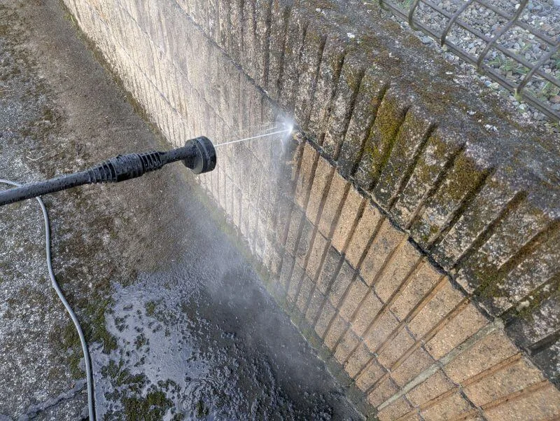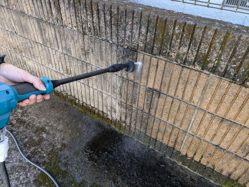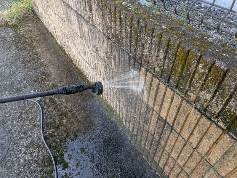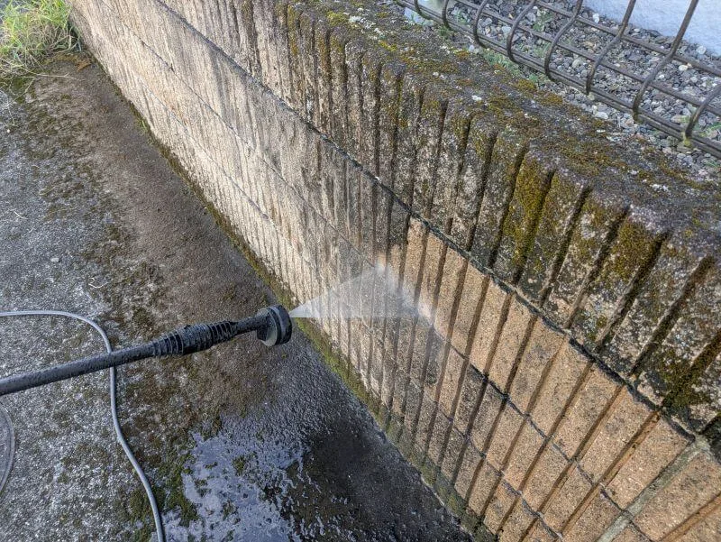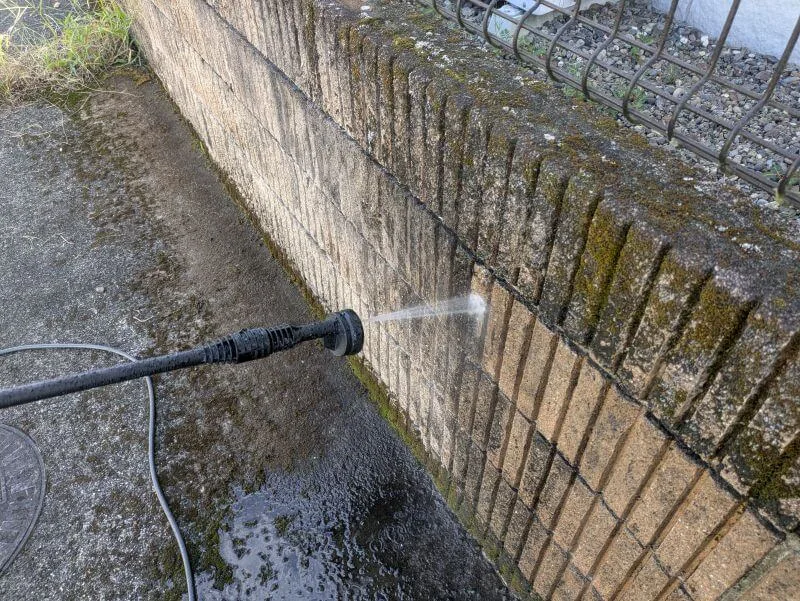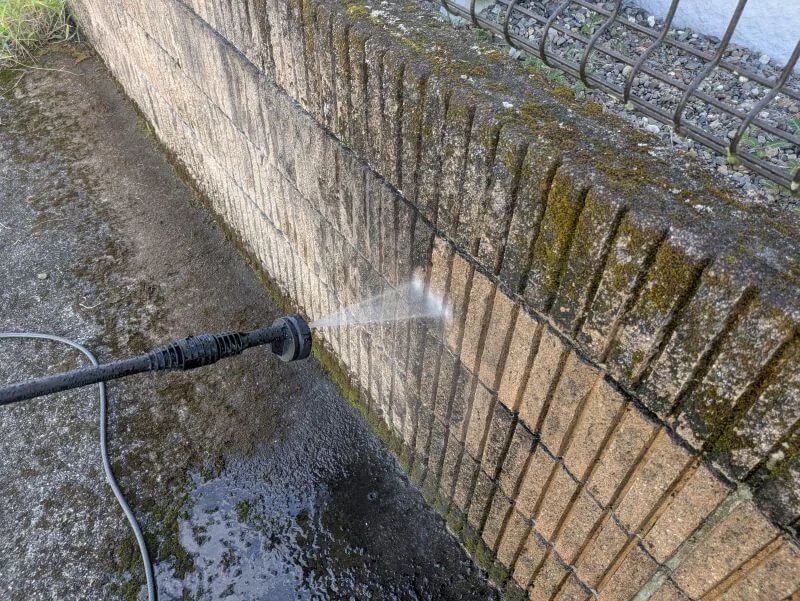 我が家のブロック塀が、黒ずみや苔で汚れていたので、さっそくMHW180Dで洗浄してみました。