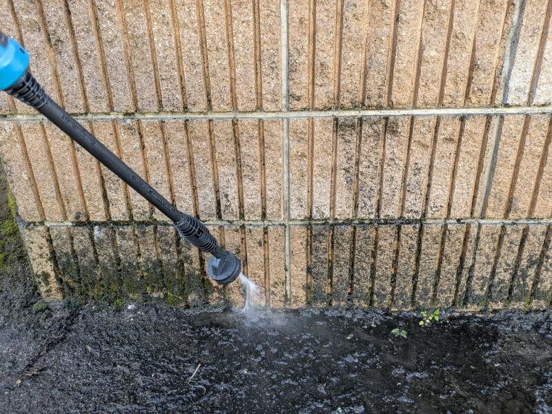 塀の汚れをHighモードで洗浄しましたが、連続で使用できる時間が約36分あり、かなりの面積を洗浄することが出来ました。